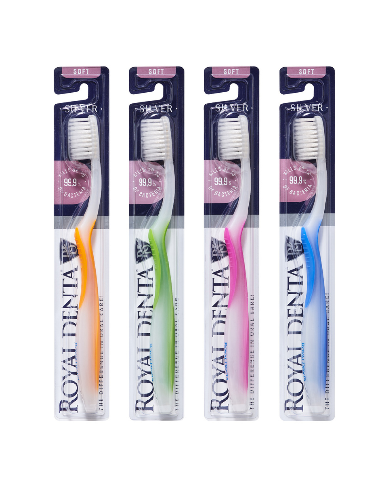 Royal Denta hambaharja harjased sisaldavad hõbedat, mis annab antibakteriaalse toime.